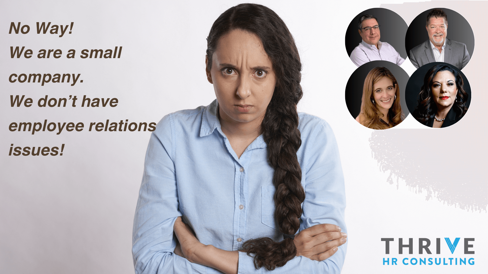 Welcome to our LinkedIn Live show, where we’ll be diving into a topic that many small companies brush off — "No Way! We are a small company. We don’t have employee relations issues!"